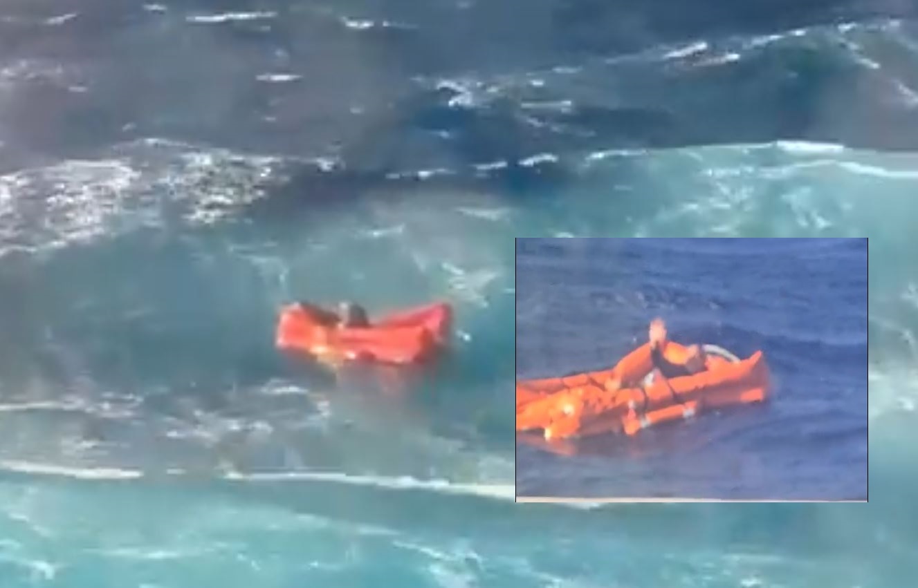 Βίντεο που τράβηξαν οι επιβάτες του πλοίου και βλέπουν το φως της δημοσιότητας δείχνουν τον ναυαγό σε μια σωσίβια λέμβο να δίνει «μάχη» με τα κύματα, την ώρα που στο σημείο έπνεαν ισχυροί άνεμοι.