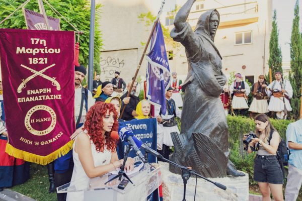 «Σήμερα στον Πειραιά, 198 χρόνια από τις νικηφόρες μάχες της Βέργας και του Διρού, τιμάμε την Ηρωίδα Μανιάτισσα, για δεύτερη συνεχή χρονιά μπροστά από το άγαλμά της στον σταθμό του Μετρό Μανιάτικα.