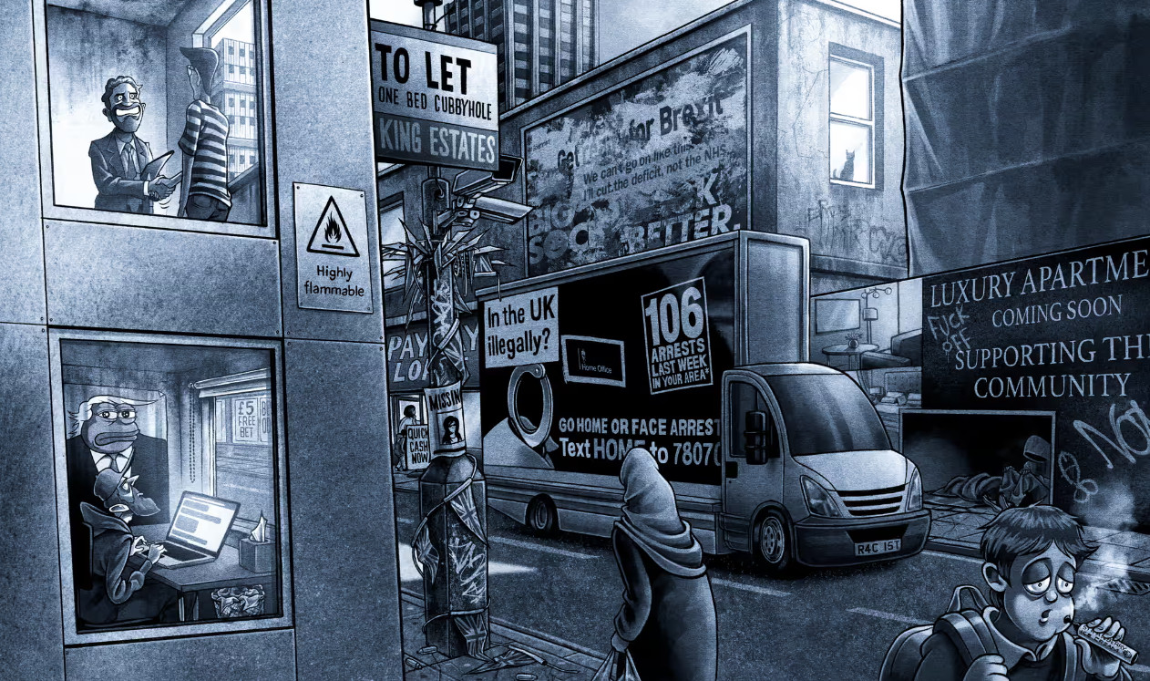 «Είναι ενδιαφέρουσα αυτή η λέξη ‘χογκαρθισμός’, έτσι δεν είναι;» λέει ο Jennings. «Αυτή η άποψη του Λονδίνου που αποτύπωσε, με όλη τη βλοσυρότητα. Αυτή είναι η άποψή μου για τη Βρετανία που τείνει να γίνει: η βρωμιά και η γκρίνια, απλά τα πράγματα είναι λίγο σκ@τά».
