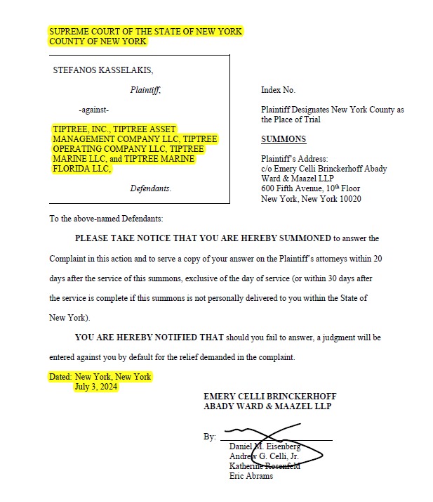 Απάντηση στον υποψήφιο βουλευτή της Νέας Δημοκρατίας, Σπύρο Καρανικόλα, που υποστήριξε ότι «το δικαστήριο στις ΗΠΑ απέρριψε την αγωγή του Στέφανου Κασσελάκη κατά της Tiptree Inc», δίνει ο Μανώλης Καπνισάκης.