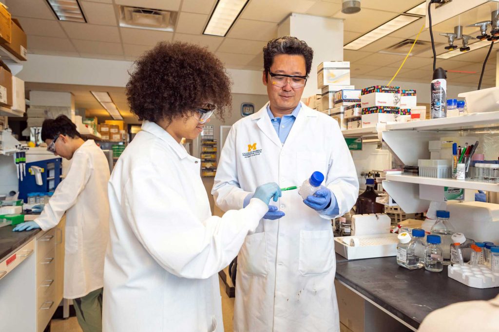 O επικεφαλής της ερευνητικής ομάδας, καθηγητής του Πανεπιστημίου του Μίσιγκαν Τζέιμς Μουν με τους συνεργάτες του στο εργαστήριο όπου αναπτύχθηκε η νέα «φυσική» θεραπεία ενάντια στις τροφικές αλλεργίες (University of Michigan)