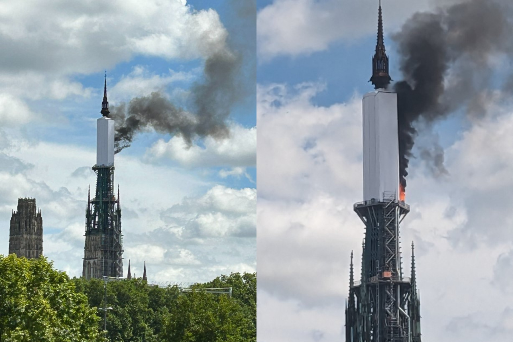 🔵[Info risque : incendie Cathédrale de Rouen] Début d’incendie en cours sur la flèche de la cathédrale de Rouen. Origine inconnue à ce stade. Tous les moyens publics sont mobilisés. Merci de faciliter leur intervention sur le secteur.