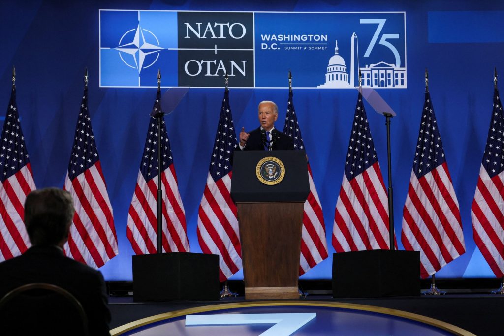 Από ότι φαίνεται, ο πρόεδρος των ΗΠΑ χρησιμοποίησε την συνέντευξη Τύπου της συνόδου κορυφής του ΝΑΤΟ ως μια ομιλία, προβολής του έργου του στην εθνική ασφάλεια όσον αφορά την υποστήριξη της Ουκρανίας κατά της ρωσικής επιθετικότητας και λέγοντας ότι η ψηφοφορία του Νοεμβρίου ήταν «κάτι πολύ περισσότερο από ένα πολιτικό ζήτημα… Είναι ένα ζήτημα εθνικής ασφάλειας».