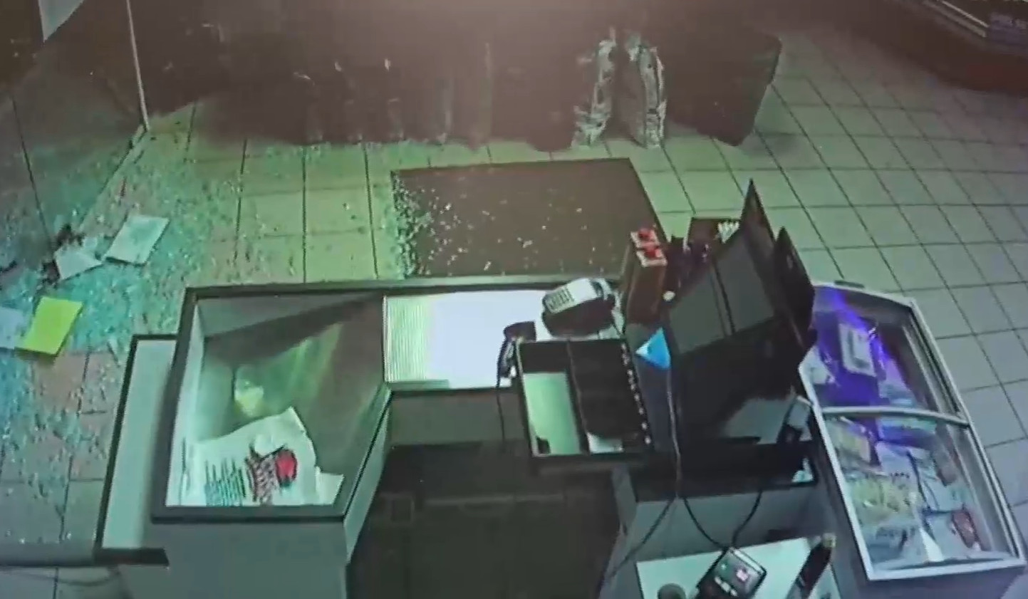 Βίντεο ντοκουμέντο δείχνει δύο διαρρήκτες να σπάνε με κλωτσιές την είσοδο ενός κρεοπωλείου στο Μενίδι, να μπαίνουν στο εσωτερικό του, να ξηλώνουν το χρηματοκιβώτιο μέσα σε δευτερόλεπτα και να γίνονται καπνός.
