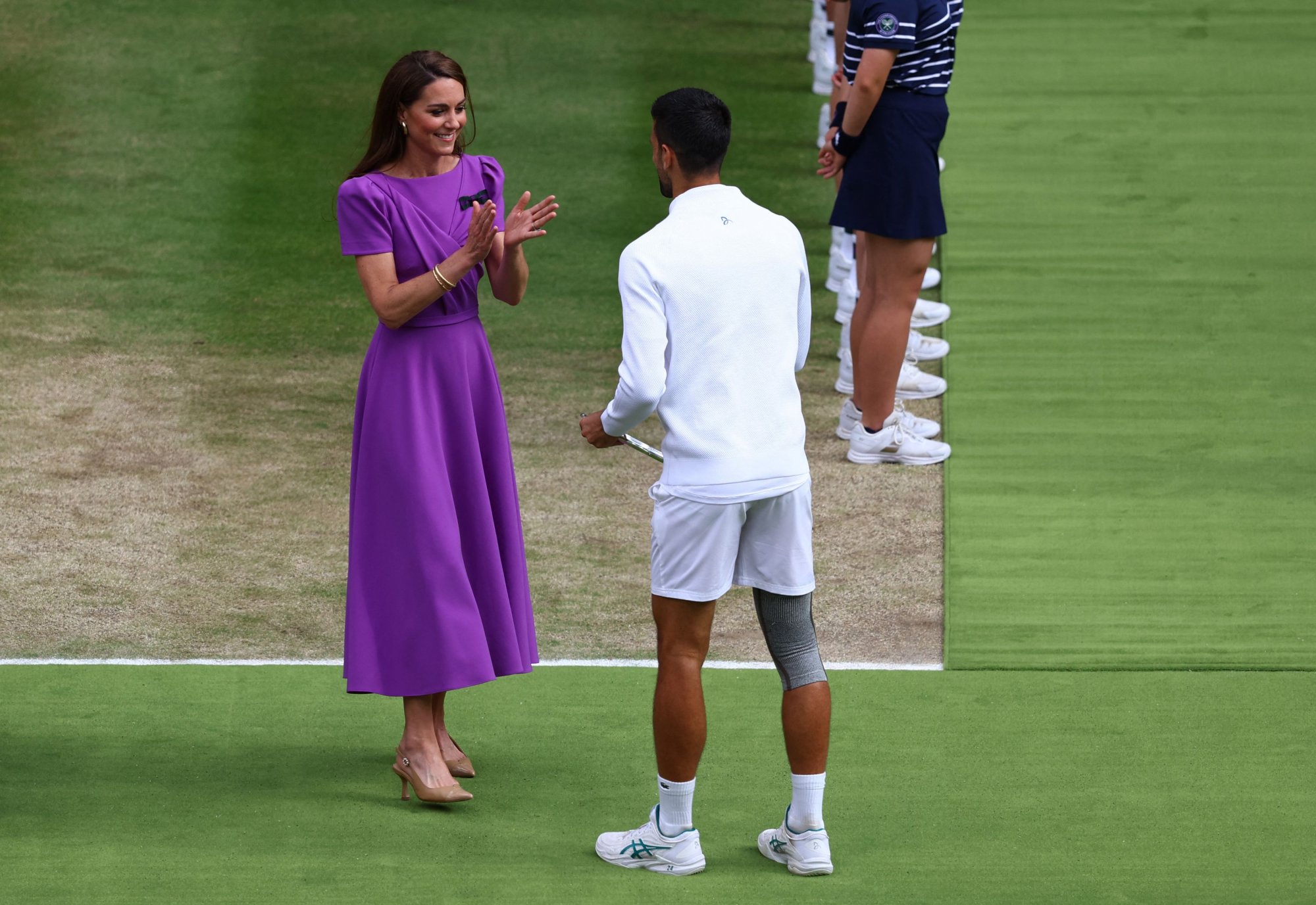 Η πριγκίπισσα της Ουαλίας, 42 ετών, μπήκε στο Centre Court στις 14 Ιουλίου μετά τον τελικό του απλού ανδρών μεταξύ του Κάρλος Αλκαράθ από την Ισπανία και του Νόβακ Τζόκοβιτς από τη Σερβία, απονέμοντας τα βραβεία στους αθλητές ως προστάτιδα του All England Lawn Tennis and Croquet Club.