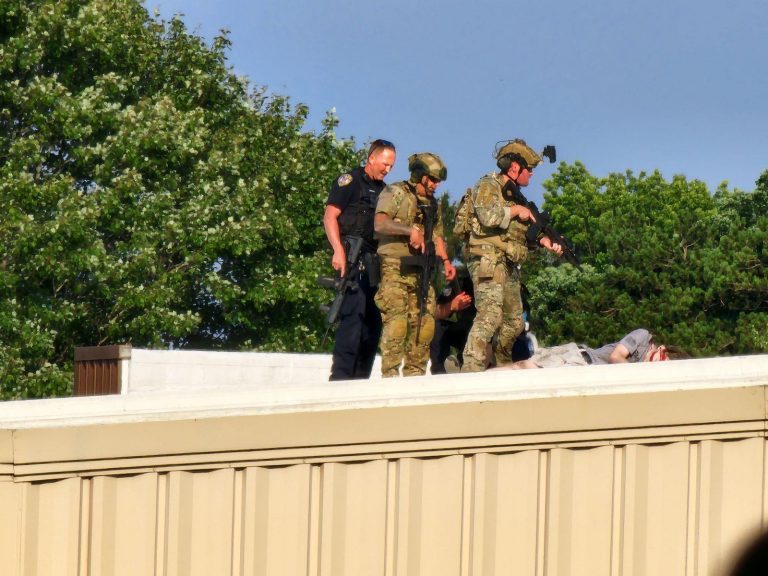 Επίσης, βίντεο που αναρτήθηκε στα social media, δείχνει έναν άνδρα στην οροφή ενός κτιρίου να έχει πέσει νεκρός.
