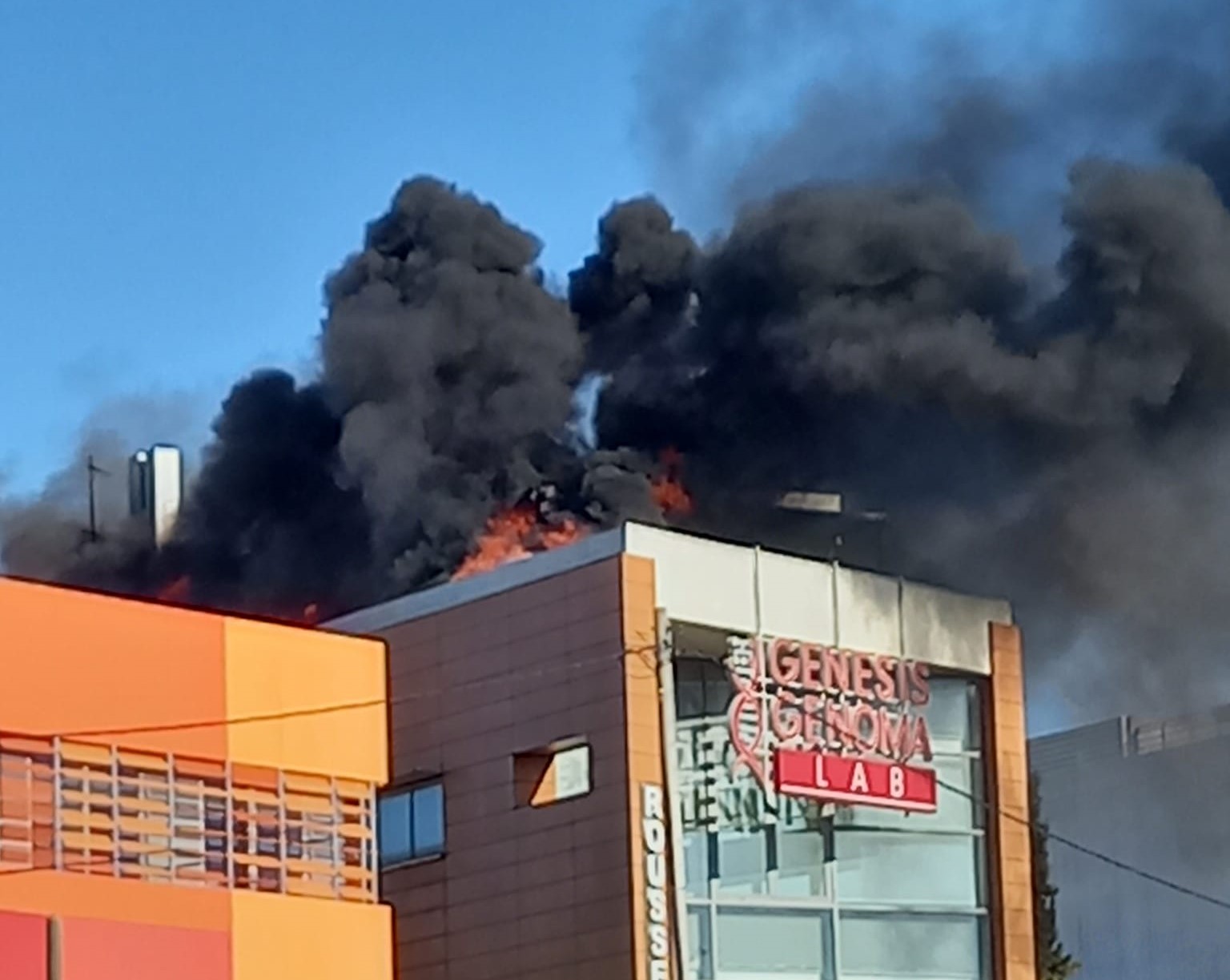 Όπως φαίνεται και από τις φωτογραφίες που εξασφάλισε το in η φωτιά φαίνεται να έχει εκδηλωθεί στην ταράτσα του κτιρίου και να έχει λάβει διαστάσεις.