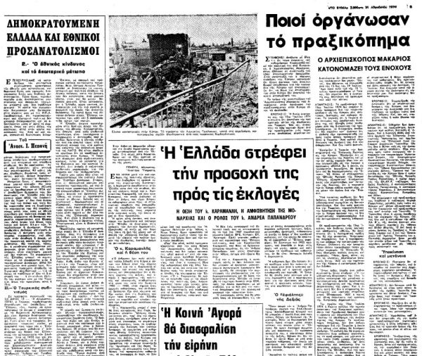 Οι πραξικοπηματίαι της 15ης Ιουλίου, εάν διέθετον ίχνος λογικής και αισθήματος ευθύνης, θα εσκέπτοντο ότι η εγκληματική πράξις των θα είχε συνεπείας. Ενήργησαν ως παράφρονες. Και η παραφροσύνη των επέφερε την καταστροφήν της Κύπρου. Ουδέποτε εις την ιστορίαν τόσον ολίγοι προεκάλεσαν τόσον μεγάλην συμφοράν. Το Ελληνικόν Έθνος εδοκίμασε πολλάς ατυχίας και συμφοράς. Ήσαν όμως αύται, ως επί το πλείστον, αποτέλεσμα πολεμικής ήττης. Αλλ’ εις την περίπτωσιν της Κύπρου η καταστροφή επήλθεν ένδοθεν.