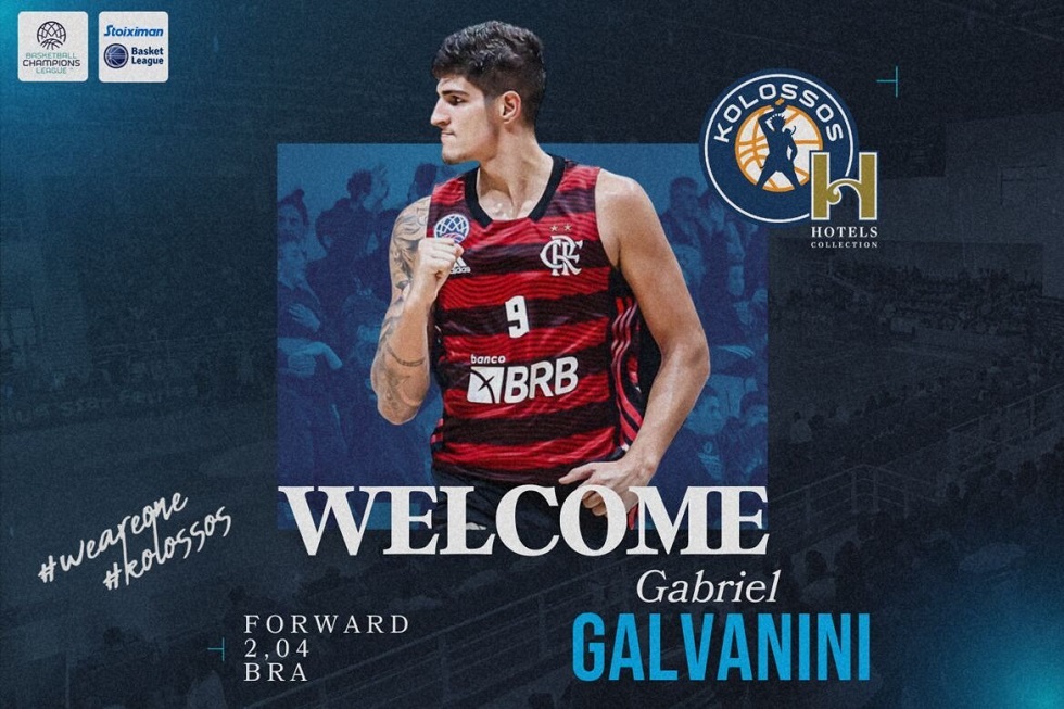 «Η ΚΑΕ Κολοσσός H Hotels Collection ανακοινώνει τη συμφωνία της με τον Γκαμπριέλ Γκαλβανίνι. Ο Γκαμπριέλ Γκαλβανίνι γεννήθηκε στις 11 Σεπτεμβρίου 1998 στη Βραζιλία, έχει ύψος 2,04 και αγωνίζεται ως φόργουορντ.