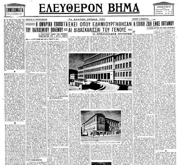 *Άρθρο του κωνσταντινουπολίτη δημοσιογράφου και λογοτέχνη Βασίλη Ηλιάδη (1892-1971), που έφερε τον τίτλο «Εκεί όπου εδημιουργήθησαν αι διδασκάλισσαι του γένους» και είχε δημοσιευτεί στην εφημερίδα «Ελεύθερον Βήμα» την Τρίτη 13 Οκτωβρίου 1936.