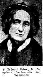 Ποίαι υπήρξαν αι πρώται διευθύντριαι του Αρσακείου; Τα σωζόμενα βιβλία αναφέρουν την Ελένην Πιτταδάκη 1836-1846, την Βάμβω Ιωάννου 1840-1841, την Κένιον —Αγγλίδα προφανώς— 1841-1842 και την Σεβαστήν Μάνου 1842-1858. Εις την φυσιογνωμίαν της πρώτης κατ’ ουσίαν διευθυντρίας του σημερινού Αρσακείου οι ασχοληθέντες με την ιστορίαν του ιδρύματος σταματούν με θαυμασμόν. Η Σεβαστή Μάνου υπήρξεν από τις μεγαλείτερες και φωτεινότερες φυσιογνωμίες που επέρασαν από το Αρσάκειον. Ως μόρφωσις και ως ενθουσιασμός. Επί δέκα εξ έτη διηύθυνε το ανώτατον αυτό εκπαιδευτήριον των θηλέων, δημιουργήσασα γενεάν μητέρων και γυναικών αξιόλογον. Απέθανεν αφήσασα παράδοσιν. Με την παράδοσιν αυτήν ως κληρονομίαν επέρασαν και αι κατόπιν πλέον σύγχρονοι διευθύντριαι των διαφόρων Αρσακείων, η Μαρία Αλεξανδρίδου, η Αικατερίνη Βαρουξάκη, η σημερινή διευθύντρια Άννα Γιαννοπούλου και η υποδιευθύντρια Ασπασία Σκορδέλη. Το έθνος οφείλει ευγνωμοσύνην εις όλες.