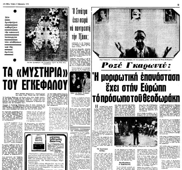 *Κείμενο του Ροζέ Γκαρωντύ για τον Μίκη Θεοδωράκη, που είχε δημοσιευτεί στην εφημερίδα «Τα Νέα» την Τετάρτη 4 Φεβρουαρίου 1976.