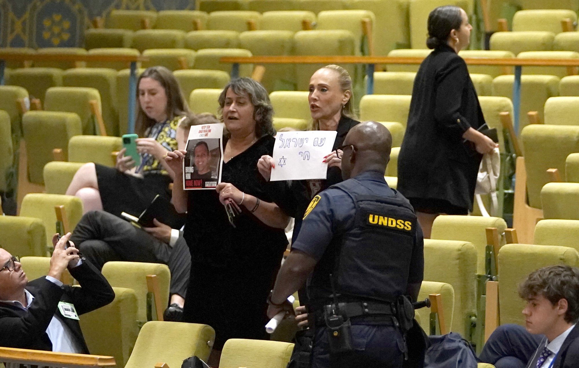 Διπλωμάτες στην αίθουσα του Συμβουλίου δήλωσαν ότι οι γυναίκες, ντυμένες στα μαύρα, φώναζαν «απελευθερώστε τους ομήρους». Μέλη ασφάλειας του ΟΗΕ ζήτησαν από τις γυναίκες να αποχωρήσουν από την αίθουσα και εκείνες το έκαναν, τόνισε ένας αξιωματούχος του ΟΗΕ.