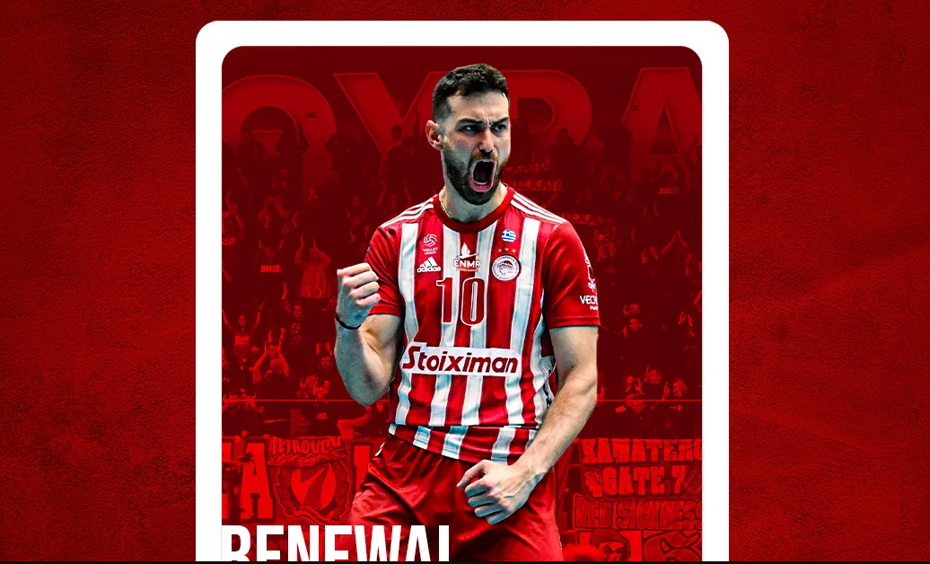Ο ΟΛΥΜΠΙΑΚΟΣ Σ.Φ.Π. ανακοινώνει την ανανέωση της συνεργασίας του με τον Ραφαήλ Κουμεντάκη. Ο διεθνής ακραίος υπέγραψε το νέο του συμβόλαιο και παραμένει στο ρόστερ της ομάδας βόλεϊ Ανδρών του συλλόγου.