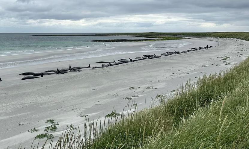 Ένα κοπάδι 77 φαλαινών ξεβράστηκε στο νησί Sanday στην Σκωτία.