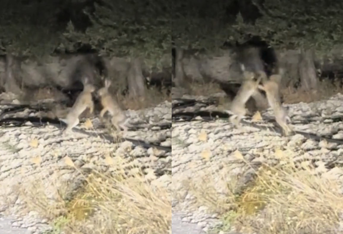 Το ίδιο, λοιπόν, συνέβη και με δύο λαγούς που εθεάθησαν να παίζουν… ξύλο πριν από λίγες μέρες. Το σκηνικό απαθανάτισε με το κινητό του τηλέφωνο ένας χρήστης του Διαδικτύου και το ανήρτησε στα social media, με αποτέλεσμα να γίνει viral μέσα σε λίγες ώρες, συγκεντρώνοντας χιλιάδες προβολές και likes σε ελάχιστο χρόνο.