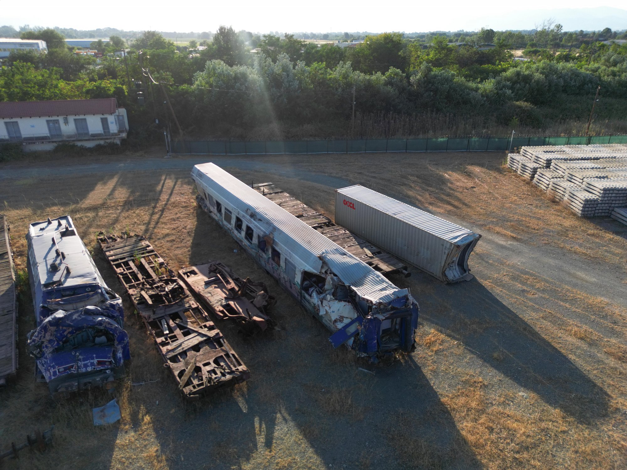 Το κοντέινερ της εμπορικής αμαξοστοιχίας στο Κουλούρι Λάρισας, όπου φυλάσσονται τα συντρίμμια του δυστυχήματος στα Τέμπη