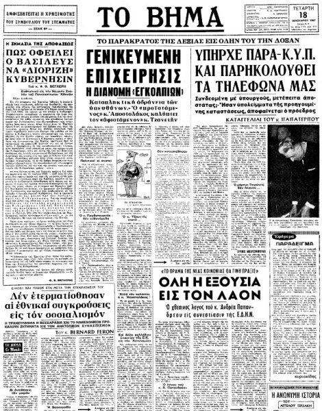 «ΤΟ ΒΗΜΑ», 18.1.1967, Ιστορικό Αρχείο «ΤΟ ΒΗΜΑ» & «ΤΑ ΝΕΑ»
