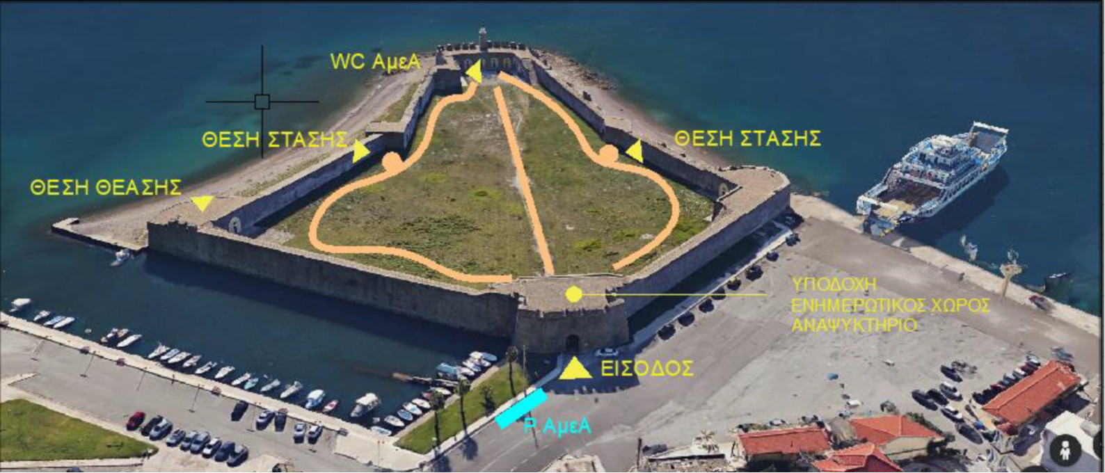 Ο σχεδιασμός του Υπουργείου Πολιτισμού περιλαμβάνει τη δημιουργία προσβάσιμης διαδρομής, ενημερωτικού χώρου, αναψυκτηρίου και χώρους υγιεινής για ΑμεΑ και άτομα τρίτης ηλικίας.