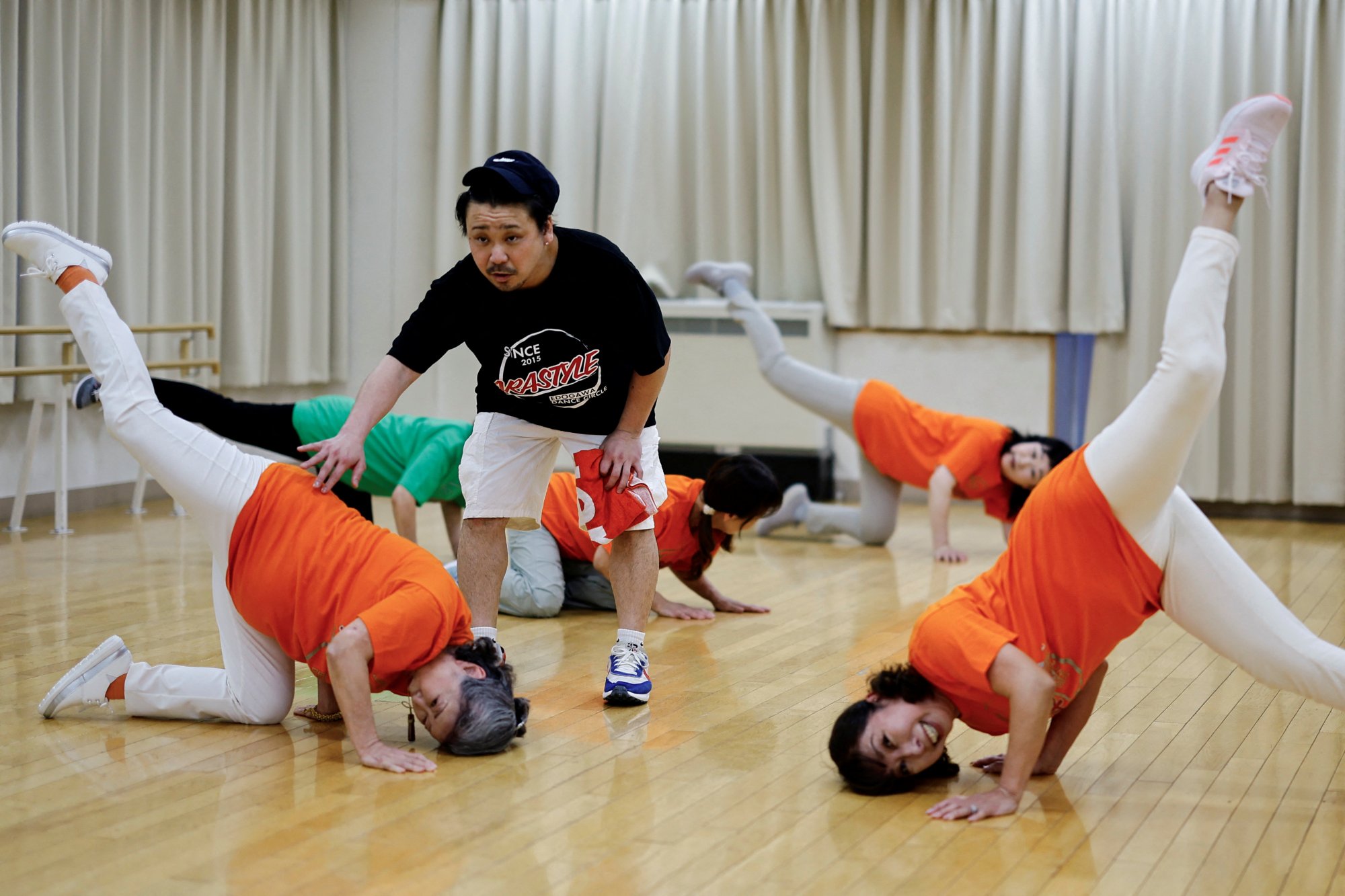 Αυτά τα υπεραιωνόβια b-girls και b-boys, που συναντιούνται δύο φορές τον μήνα σε ένα κοινοτικό κέντρο στην περιοχή Edogawa της πρωτεύουσας, οφείλουν να ευχαριστήσουν τους διοργανωτές των Ολυμπιακών Αγώνων του Παρισιού αυτό το καλοκαίρι και τον πρώην εθνικό πρωταθλητή του breaking, Yusuke Arai, για αυτή την πρωτότυπη προσέγγιση της γυμναστικής στην τρίτη ηλικία.