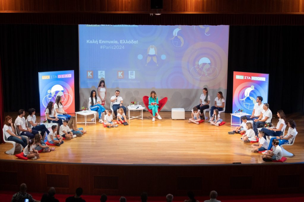Ακριβώς για αυτό, από τους Ολυμπιακούς Αγώνες του Τόκιο το 2021, πραγματοποιεί μία γιορτή που φέρνει κοντά την Ολυμπιακή με την Παραολυμπιακή Ομάδα. Κάτι τέτοιο, λοιπόν, συνέβη και στη σκηνή του Pierce Theater, στην οποία βρέθηκαν 13 αθλητές, συνοδευόμενοι από μικρά Κωτσοβολάκια. Ο Νάσος Γκαβέλας (Στίβος 100μ), η Τατιάνα Γκουσίν (Άλμα εις ύψος), ο Γιάννης Κωστάκης (Κολύμβηση), ο Βαγγέλης Μακρυγιάννης (Κολύμβηση), η Σοφία Μαλκογεώργου (Καλλιτεχνική κολύμβηση), η Λήδα Μαρία Μανθοπούλου (Στίβος 100μ), ο Δημήτρης Μπακοχρήστος (Άρση βαρών σε πάγκο), η Ελένη Παπασταματοπούλου (Para Tae kwon do), η Δώρα Πασχαλίδου (Τζούντο), η Ευαγγελία Πλατανιώτη (Καλλιτεχνική κολύμβηση), η Μαρία Πρεβολαράκη (Πάλη), η Κατερίνα Στεφανίδη (Άλμα επί κοντώ) και ο Χαράλαμπος Χαλκιαδάκης (Σκοποβολή πήλινου στόχου) πήραν θέση ο ένας πλάι στον άλλο, ξεκινώντας μεταξύ τους ένα «γαϊτανάκι» από ερωτήσεις και εξομολογήσεις, ένα «γαϊτανάκι» το οποίο μας «πλημμύρισε» συγκίνηση, χαρά και ελπίδα, μεταδίδοντας μηνύματα τα οποία ήταν ανεκτίμητα μαθήματα ζωής για μικρούς και μεγάλους.