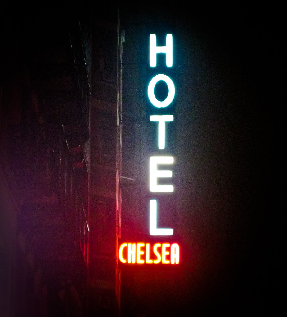 Το Hotel Chelsea της Νέας Υόρκης, το οποίο έχει μνημονευθεί σε τραγούδια από τους πρώην ενοίκους Bob Dylan, Leonard Cohen και Nico, έχει φιλοξενήσει μια εκπληκτική πελατεία καλλιτεχνών, συγγραφέων και «αδέσποτων», όπως ο Brendan Behan, ο Arthur C Clarke (ο οποίος το αποκάλεσε «πνευματικό του σπίτι»), ο Andy Warhol και ο Jackson Pollock.