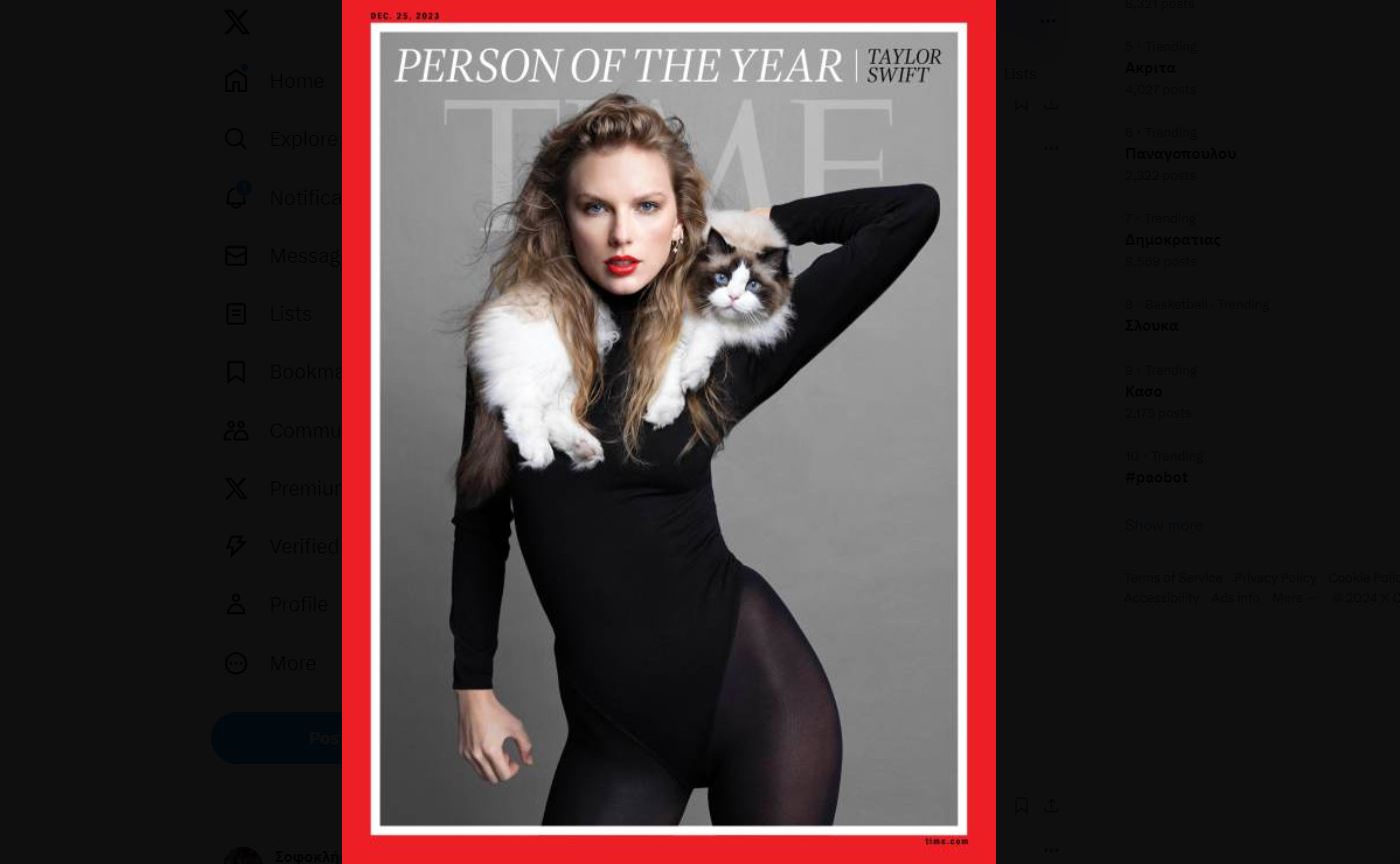 Όπως μπορείτε να δείτε παρακάτω, η Σουίφτ με την γάτα της έχουν κάνει μέχρι και εξώφυλλο στο Time ως «Πρόσωπο της Χρονιάς».