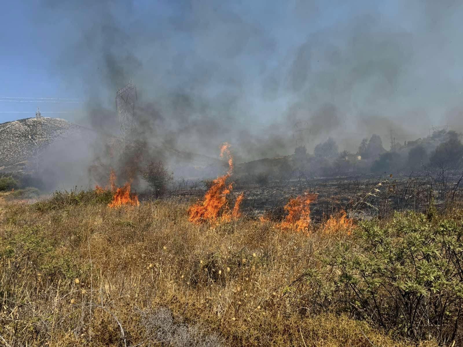 Η φωτιά εκδηλώθηκε σε χαμηλή βλάστηση με ξερά χόρτα και θάμνους σε οικοπεδικούς χώρους και καλλιέργειες ανάμεσα στα Καλύβια και τη Λεωφόρο Αθηνών Σουνίων.