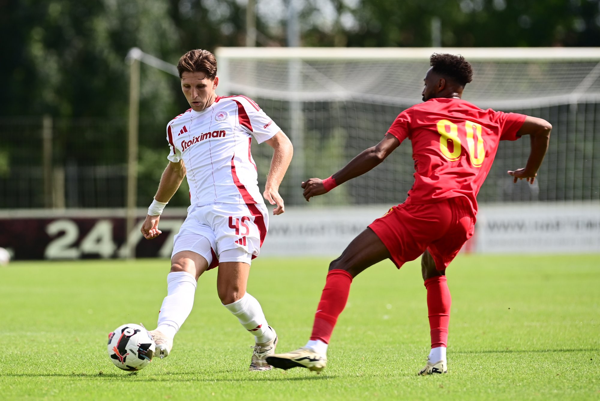 Για τον κόσμο του Ολυμπιακού και την παρουσία του φιλικό: «Είμαστε πολύ χαρούμενοι. Είναι το πιο ωραίο συναίσθημα να δίνεις χαρά στον κόσμο. Είναι η απόλυτη ευχαρίστηση ενός ποδοσφαιριστή»