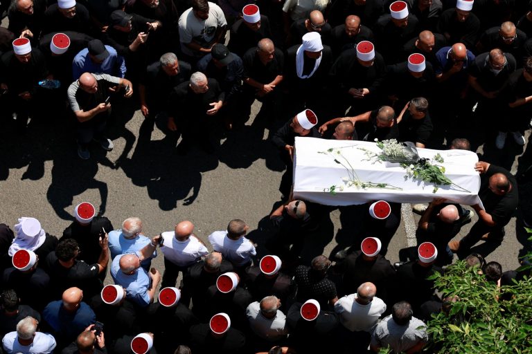 Χιλιάδες άνθρωποι από την κοινότητα των Δρούζων έχουν συγκεντρωθεί για τις κηδείες. Άνδρες, ντυμένοι με παραδοσιακά ρούχα, μετέφεραν τα σκεπασμένα με λευκά σκεπάσματα φέρετρα στους δρόμους του Majdal Shams, όπου συνέβη το χτύπημα.