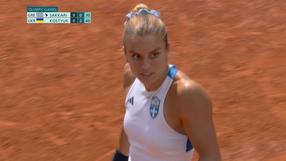 Η Μαρία Σάκκαρη βρέθηκε σε δύσκολη θέση στο πρώτο σετ της αναμέτρησης με τη Μάρτα Κόστιουκ στη «μάχη» για την πρόκριση στην επόμενη φάση των Ολυμπιακών Αγώνων στο μονό των γυναικών.