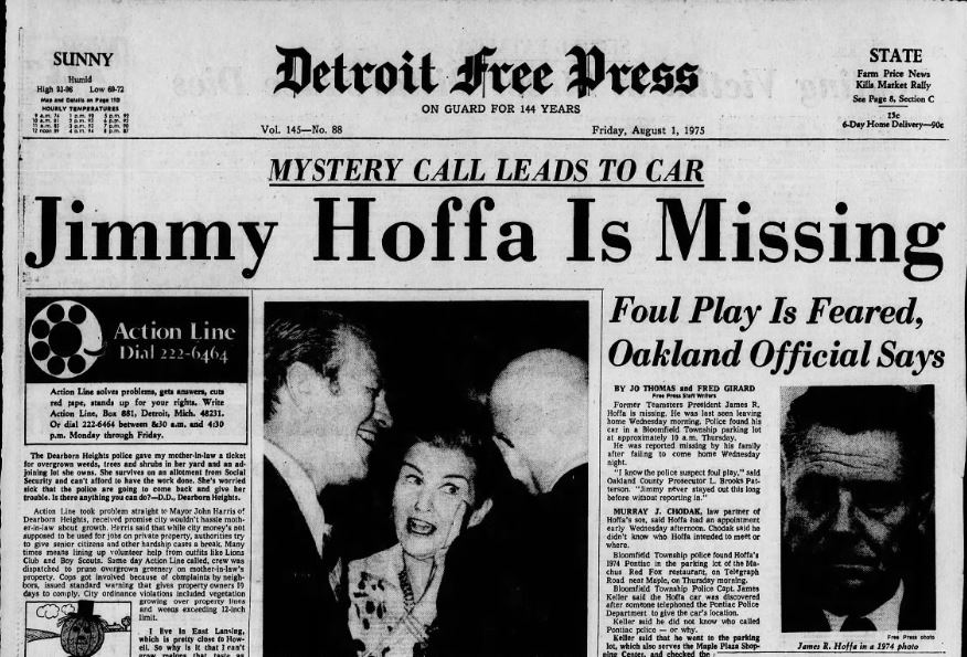 Στις 30 Ιουλίου του ίδιου έτους, ο Χόφα έφυγε από το σπίτι του στην περιοχή του Ντιτρόιτ για μια συνάντηση με έναν τοπικό εγκληματία και έναν συνδικαλιστή ηγέτη από το Νιου Τζέρσεϊ που είχε διασυνδέσεις με τη μαφία σε ένα εστιατόριο στην πόλη Μπλούμφιλντ.