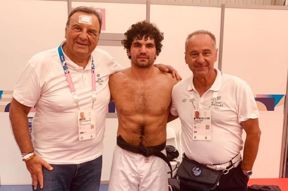 Πήγε και στο τζούντο και παρακολούθησε τον Θοδωρή Τσελίδη στην προσπάθεια του στην κατηγορία των -90 κιλών.