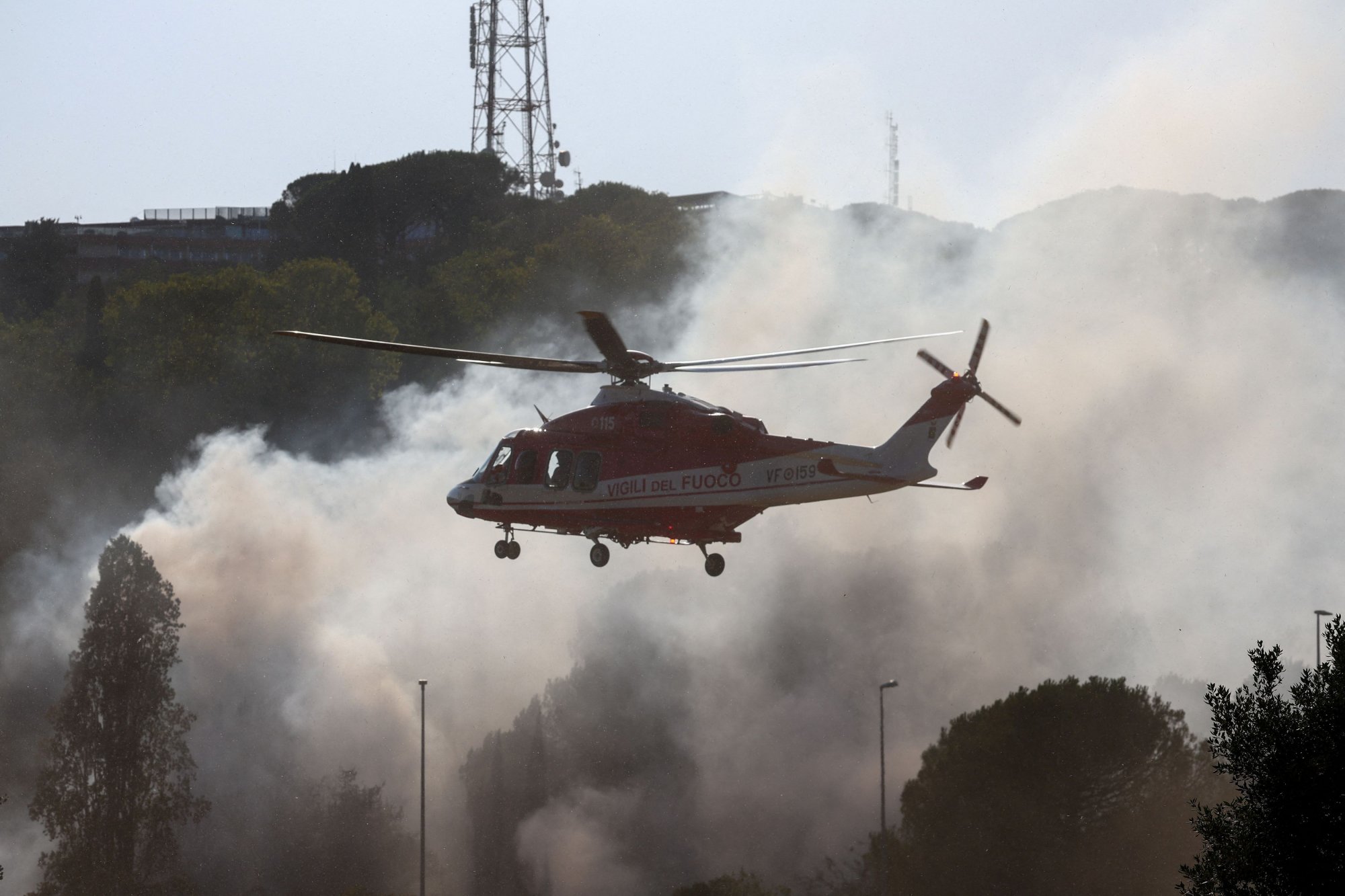 Παράλληλα, αποφασίστηκε η διακοπή ζωντανής τηλεοπτικής εκπομπής της Rai. Σε όλη την περιοχή Πράτι, στον λόφο Μόντε Μάριο, επιχειρούν πυροσβέστες και δυνάμεις της Ιταλικής Πολιτικής Προστασίας.
