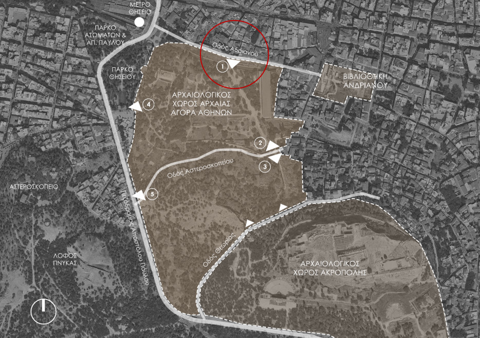 Το έργο αφορά στη συνολική ανάδειξη του αρχαιολογικού χώρου με επίκεντρο τη διαμόρφωση νέας πύλης εισόδου – εξόδου, επί της οδού Αδριανού, και στη βελτίωση της προσβασιμότητας στον χώρο.