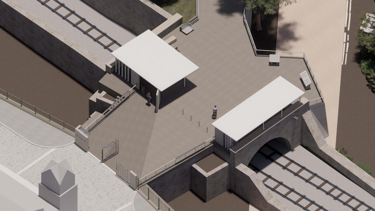 Προτείνεται νέο μεταλλικό στέγαστρο για την εξυπηρέτηση των επισκεπτών, τη στέγαση του αυτόματου πωλητή νερού και του εκδοτηρίου e-ticket.