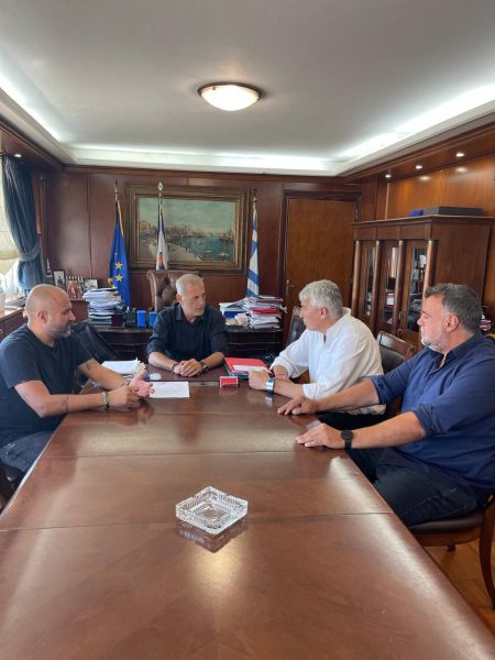 Με τον υποψήφιο Πρόεδρο της Ελληνικής Ομοσπονδίας Καλαθοσφαίρισης Παναγιώτη Φασούλα, συναντήθηκε σήμερα ο Δήμαρχος Πειραιά Γιάννης Μωράλης, στο Δημαρχείο Πειραιά.