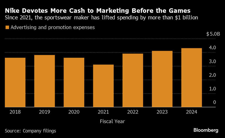 Η Heidi O’Neill, πρόεδρος καταναλωτών, προϊόντων και επωνυμίας της Nike, είπε στο Reuters τον Απρίλιο ότι «το Ολυμπιακό μάρκετινγκ θα είναι η «μεγαλύτερη δαπάνη για τα μέσα ενημέρωσης της εταιρείας».