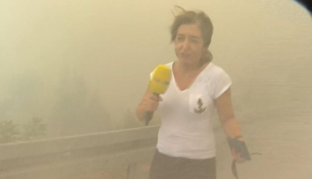 Το περιστατικό που καταγράφηκε σε ζωντανή μετάδοση, έγινε κατά την επιχείρηση κατάσβεσης της μεγάλης φωτιάς από τις πυροσβεστικές δυνάμεις της χώρας.