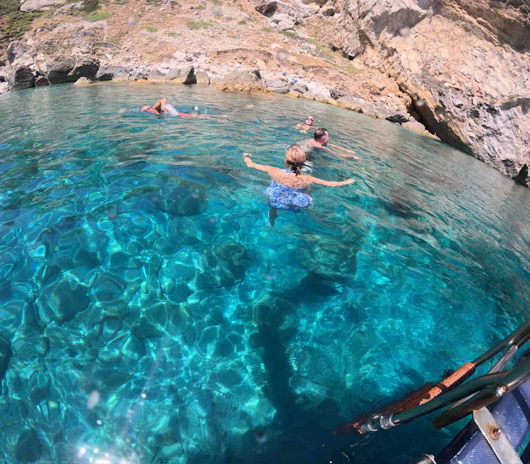 Τουρίστες απολαμβάνουν το κολύμπι τους σε έναν από τους απάνεμους όρμους που προσεγγίζουν τα ψαροκάικα