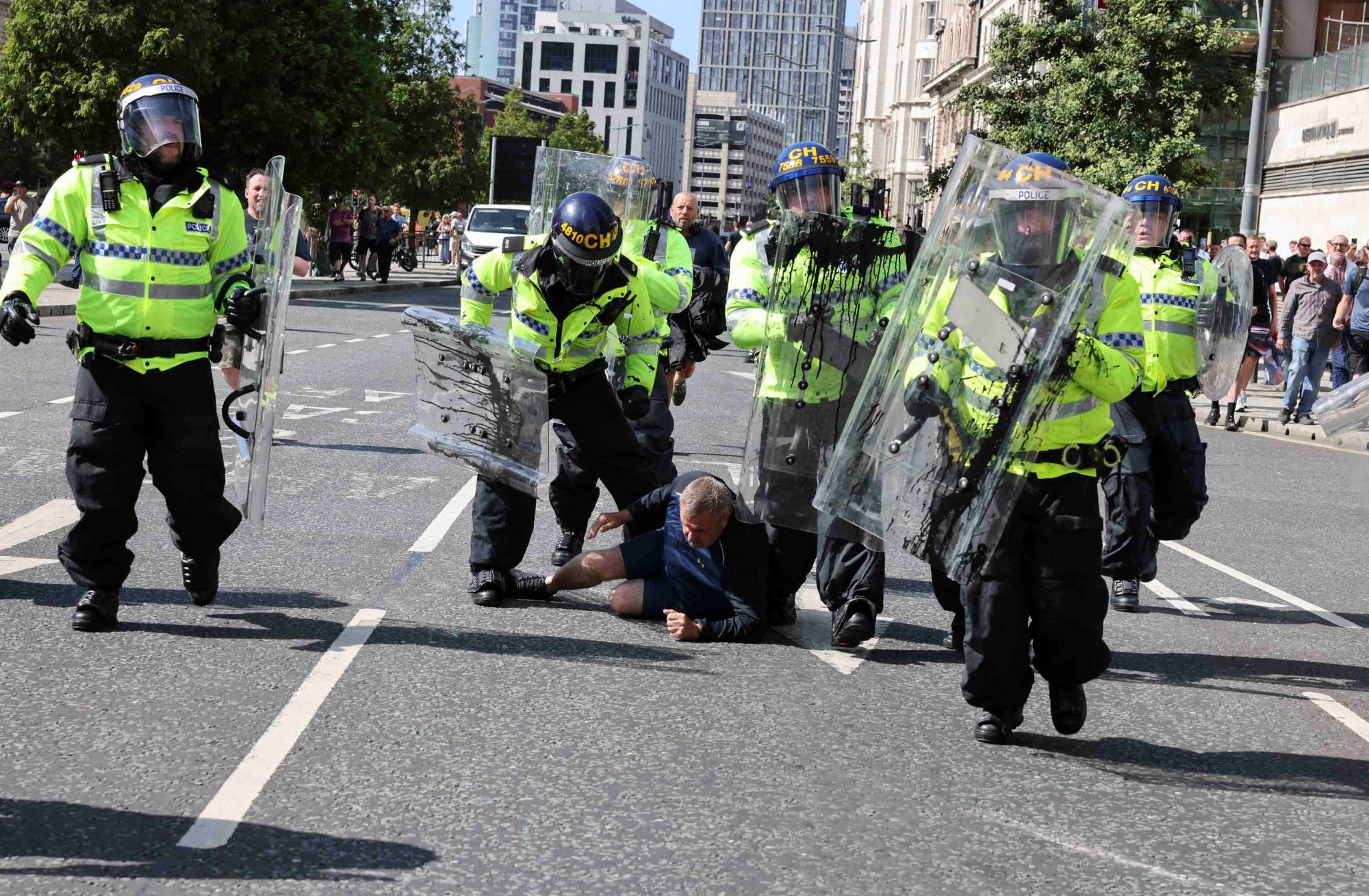 Στιγμιότυπο από τις αντιμεταναστευτικές διαδηλώσεις στο Λίβερπουλ