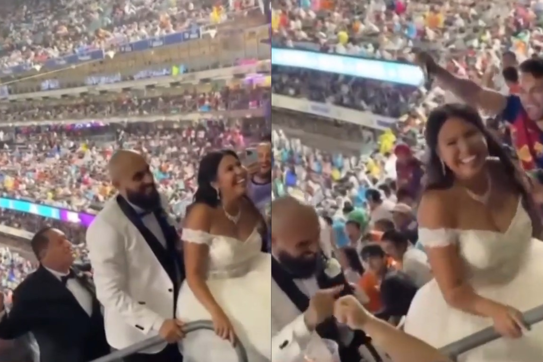 Ένα νιόπαντρο ζευγάρι έκανε μια εντυπωσιακή είσοδο στο στάδιο MetLife στις ΗΠΑ το Σάββατο 3 Αυγούστου, για να παρακολουθήσει την αναμέτρηση μεταξύ της Ρεάλ Μαδρίτης και της Μπαρτσελόνα.