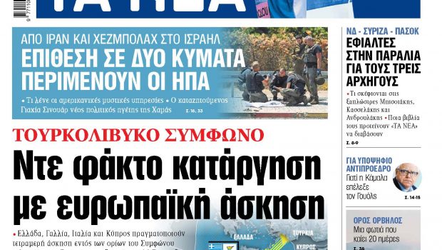 Στα «ΝΕΑ» της Τετάρτης: Τουρκολιβυκό σύμφωνο – Ντε φάκτο κατάργηση με ευρωπαϊκή άσκηση