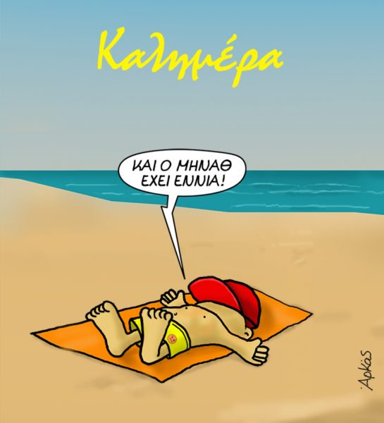 «ΚΑΙ Ο ΜΗΝΑΘ ΕΧΕΙ ΕΝΝΙΑ». Με αυτή τη φράση και τον Θανασάκη να λιάζεται σε μια ελληνική παραλία, υποδέχθηκε την Παρασκευή ο Αρκάς και ήταν σαν να μπήκε στο μυαλό όλων μας. Από τη μια είναι η τελευταία (εργάσιμη) ημέρα της εβδομάδας για αρκετούς από την άλλη πολλοί είναι αυτοί που ετοιμάζονται να ξεκινήσουν τις καλοκαιρινές τους διακοπές με το δεύτερο κύμα της εξόδου από την πόλη, λογικό είναι η σκέψη των περισσότερων να βρίσκεται ήδη σε κάποια παραλία και σε στιγμές χαλάρωσης.