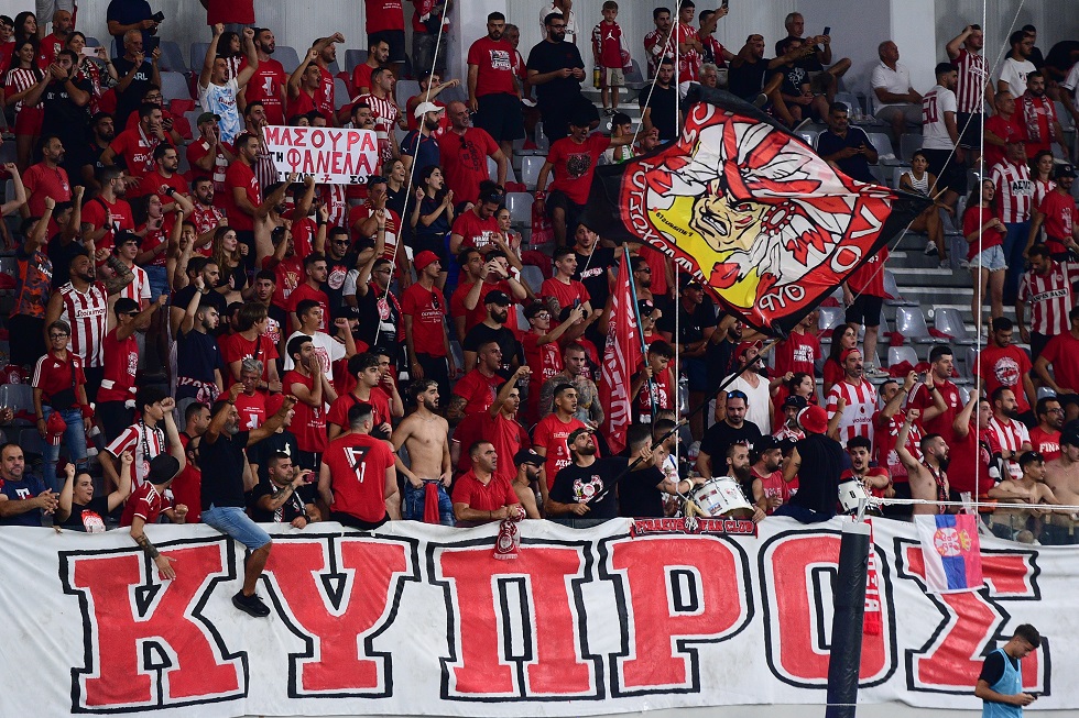 Δείτε φωτογραφίες με τον κόσμο του Ολυμπιακού στις κερκίδες του «Alphamega Stadium»: