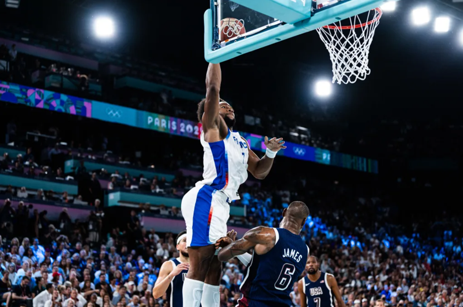 Τρομερή φάση από τους Γάλλους προς το φινάλε του δεύτερου δεκαλέπτου του μεγάλου τελικού του Ολυμπιακού τουρνουά με τις ΗΠΑ.
