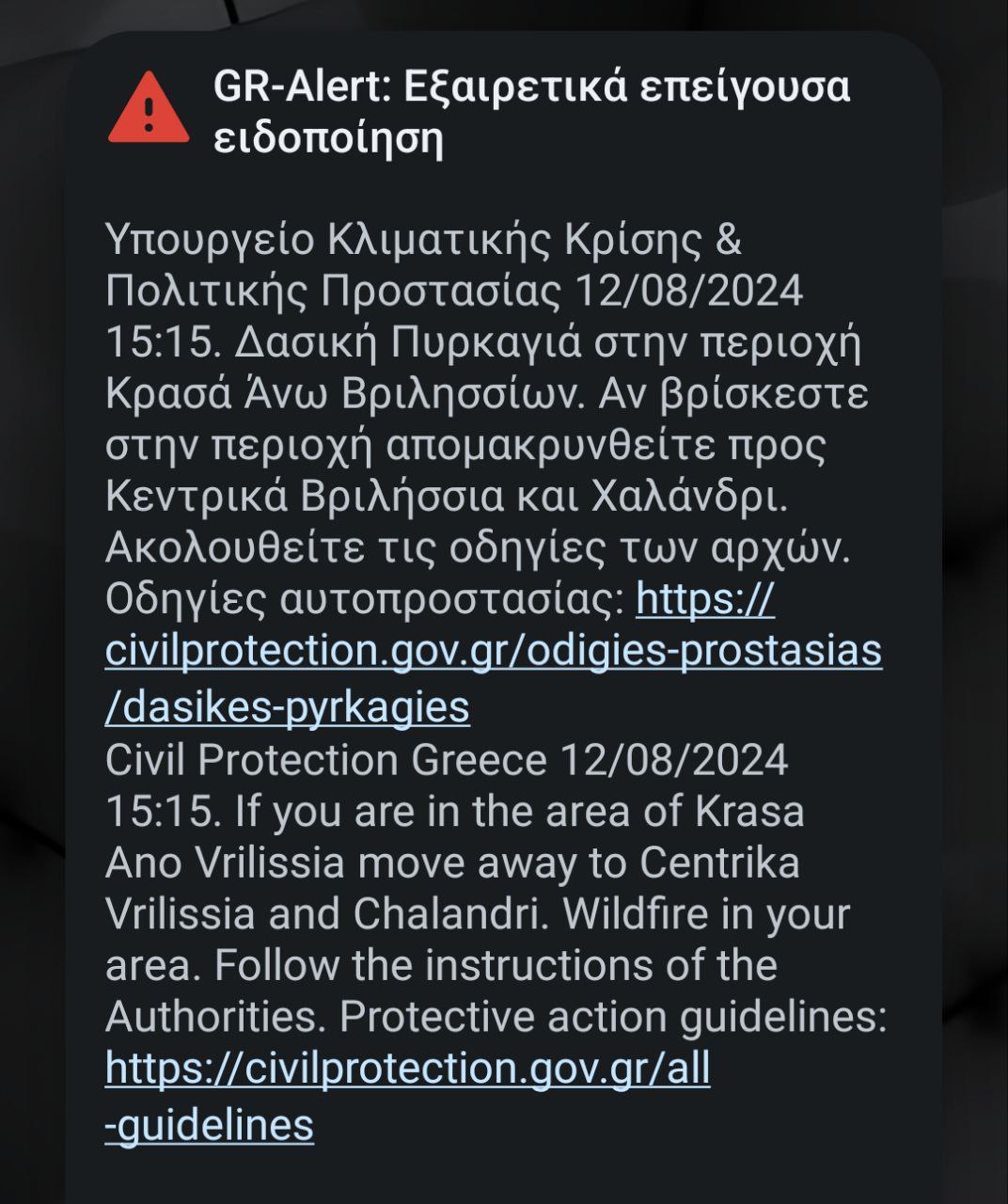 Εντωμεταξύ πριν από λίγο δόθηκε εντολή εκκένωσης στους κατοίκους των Άνω Βριλησσίων μέσω 112 που τους καλούσε να μεταφερθούν στα κεντρικά Βριλήσσια και στο Χαλάνδρι.