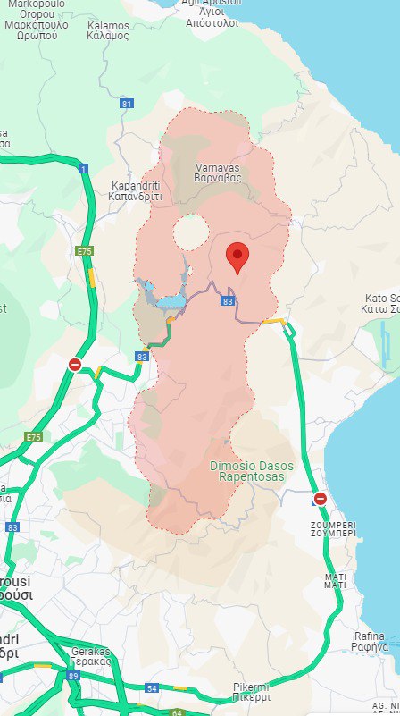 Το μέγεθος της φωτιάς δείχνει και ο χάρτης της Google