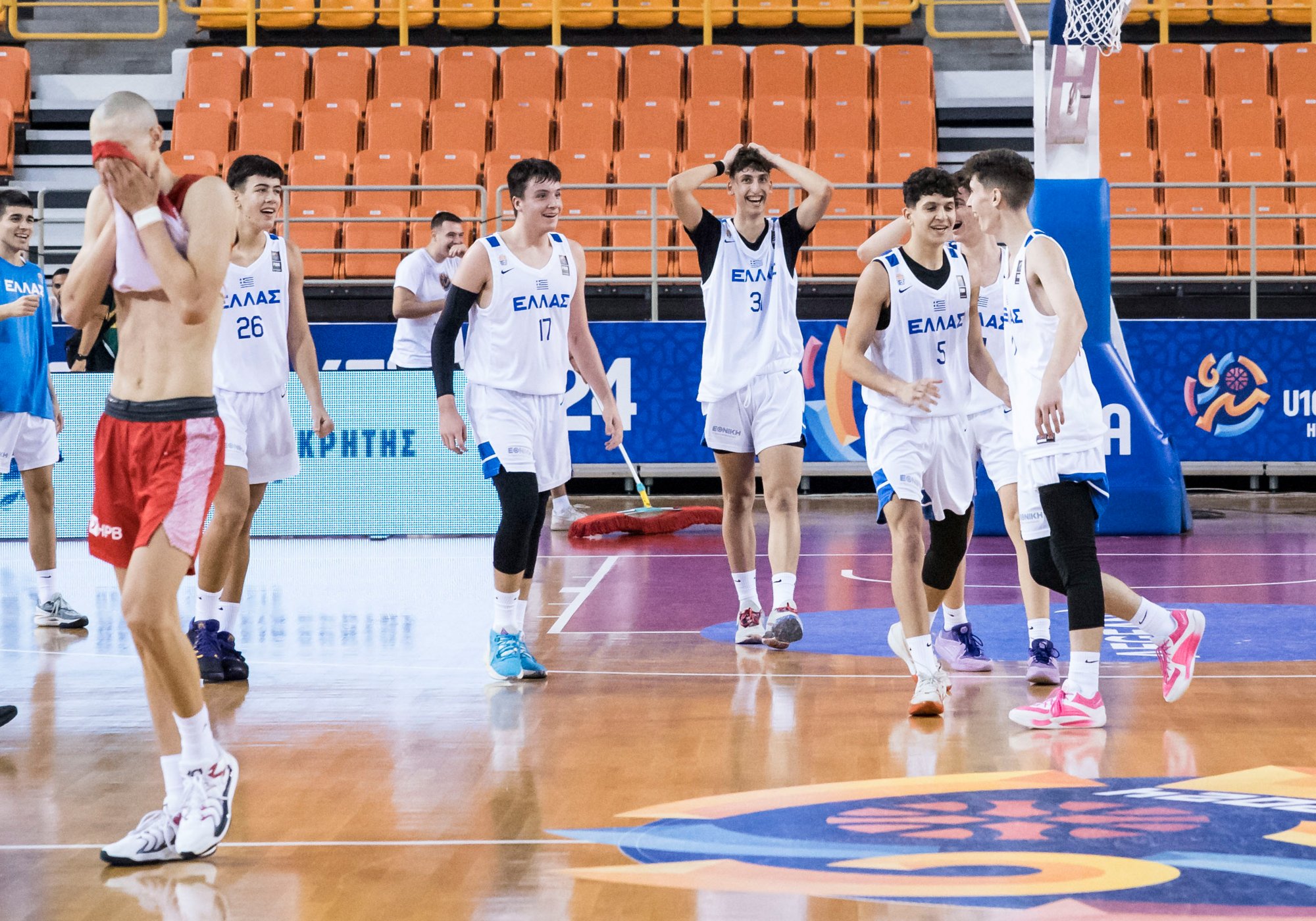 Το αρχικό 5-2 (1’) ανατράπηκε γρήγορα από μια Ελλάδα που φαινόταν αποφασισμένη και διαβασμένη. Ο Σκληρός έδωσε το προβάδισμα από τη γραμμή της φιλανθρωπίας (5-6, 3’10’’) με την ελληνική ομάδα να φτάνει στο 8-14 (6’20’’) με τους Ασημένιο και Χατζηλάμπρου. Ο Γιάννης Καλαμπόκης είδε τους παίκτες του συνεχίζουν στον ίδιο ρυθμό με τον Μπαρμπαγιάννη να γράφει το 15-28 (9’35’’). Τα φάουλ ωστόσο είχαν ήδη αρχίσει να «βαραίνουν» την Εθνική Παίδων με τους Σκληρό, Χαϊδεμένο, Τσώνη, Χατζηλάμπρου να μετράνε από δύο λίγο πριν τα μισά της δεύτερης περιόδου.