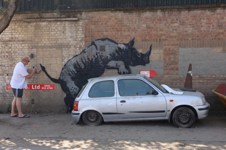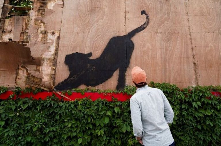 Το στένσιλ ενός λύκου που ουρλιάζει ζωγραφισμένο σε δορυφορικό πιάτο στο Peckham, κλάπηκε λίγες ώρες μετά την αποκάλυψή του στο Λονδίνο, σύμφωνα με δημοσίευμα του Guardian. Το έργο αυτό αποτελεί μέρος μιας νέας σειράς με θέμα τα ζώα που εμφανίστηκε σε όλη την πόλη αυτή την εβδομάδα, προκαλώντας ενθουσιασμό και εικασίες. Ο ακόμα και σήμερα άγνωστος καλλιτέχνης με έδρα το Μπρίστολ μοιράστηκε τη σειρά στο Instagram, όπου οι θαυμαστές εντόπισαν γρήγορα τα νέα έργα.